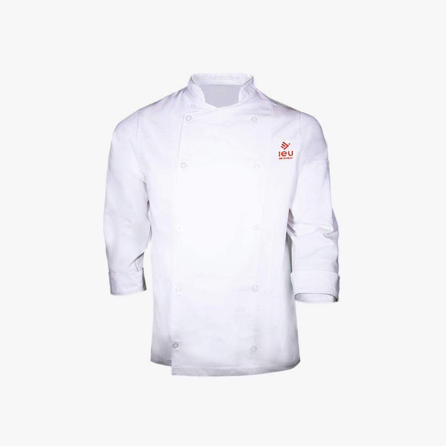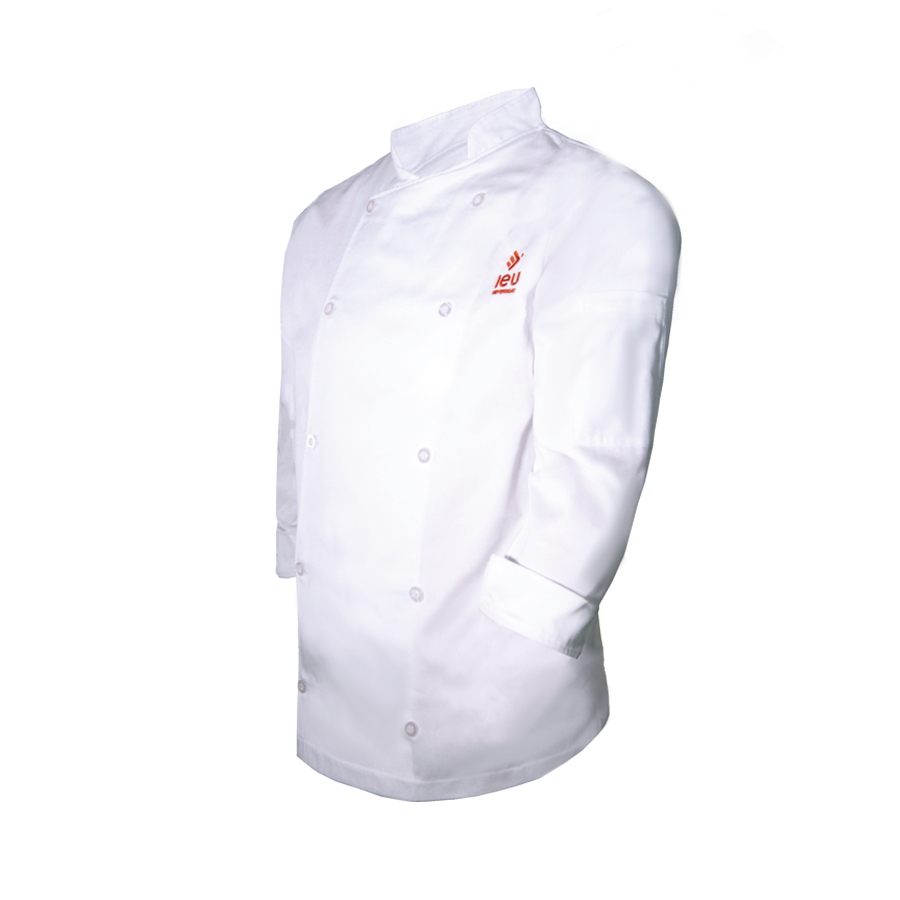 Filipina color blanco, manga tres cuartos, con bolsa en manga izquierda y logotipo al frente bordado.