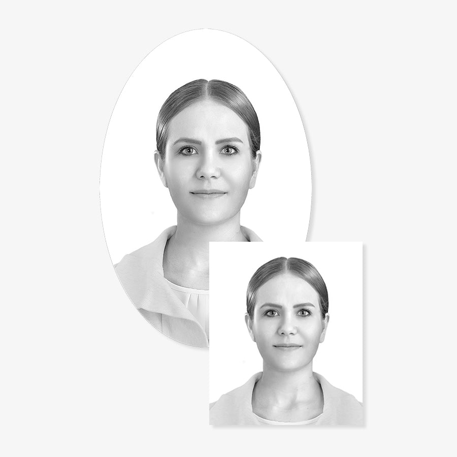 - 6 fotografías tamaño título, ambas con fondo blanco y retoque, impresas en blanco y negro, en papel mate autoadherible.